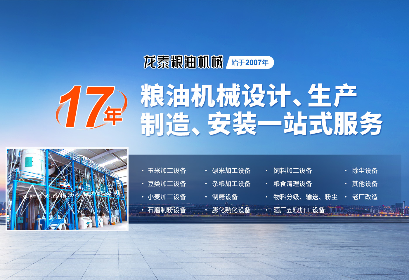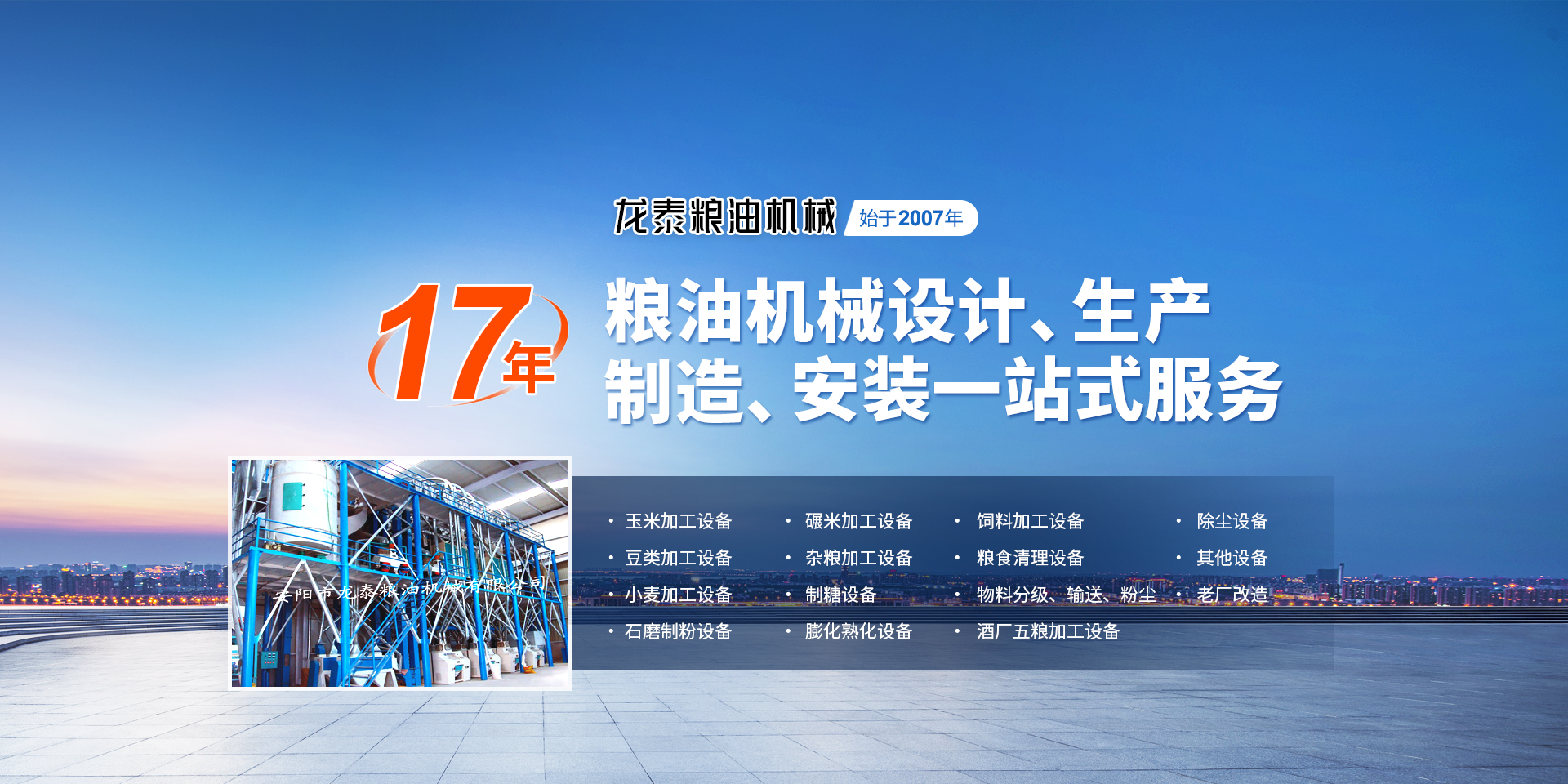 安陽市龍泰糧油機械有限公司是一個集糧油機械設計、生產制作、安裝于一體的設備制造商。公司坐落于農業生產基地河南省安陽市。多年來,公司與科研機構建立了廣泛的技術協作關系,精心致力于糧食加工設備的技術創新與應用,產品涵蓋整套碾米機械、小麥加工設備、玉米加工設備、雜糧加工設備,飼料加工及油脂設備等多個領域??沙薪尤椎慕昏€匙工程,提供從資金預算,整體規劃,土建設計,設備制造、安裝、培訓,售后保障等一站式服務?! ∥夜緭碛歇毩⒆灾鬟M出口權及產品原產地注冊證書。產品除國內市場外,多次出口到,亞洲,非洲,南美洲、東歐等多個國家及地區。為國內外多家企業提供了工藝先進,技術過硬,節能的糧油設備,深得國內外客戶的一致好評。  公司以“質量就是生命”為宗旨,根據客戶不同需求,采用合理的技術方案,為客戶量身打造投資建廠方略,爭取實現高收益。公司生產過程嚴格按照合同和圖紙設計要求,生產符合設計標準、檢測標準、質量優良的產品供給客戶,并提供安裝、調試、培訓,保修期免費維修,終身免費咨詢等服務,確保設備在長期使用中穩定運行。  龍泰-愿與您一起攜手共創輝煌!